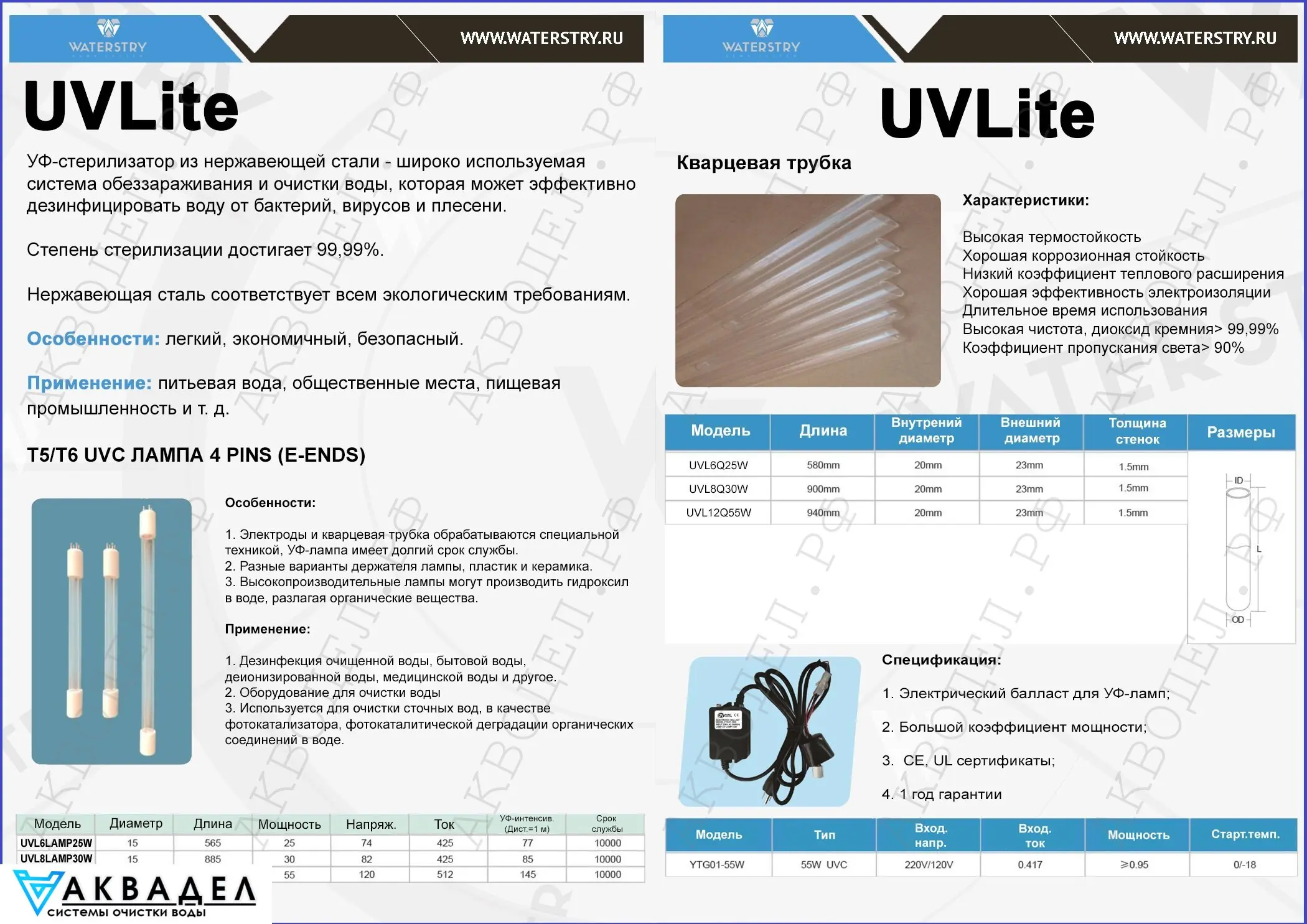 Кварцевая трубка WATERSTRY UVLite12GPM 55W 940mm